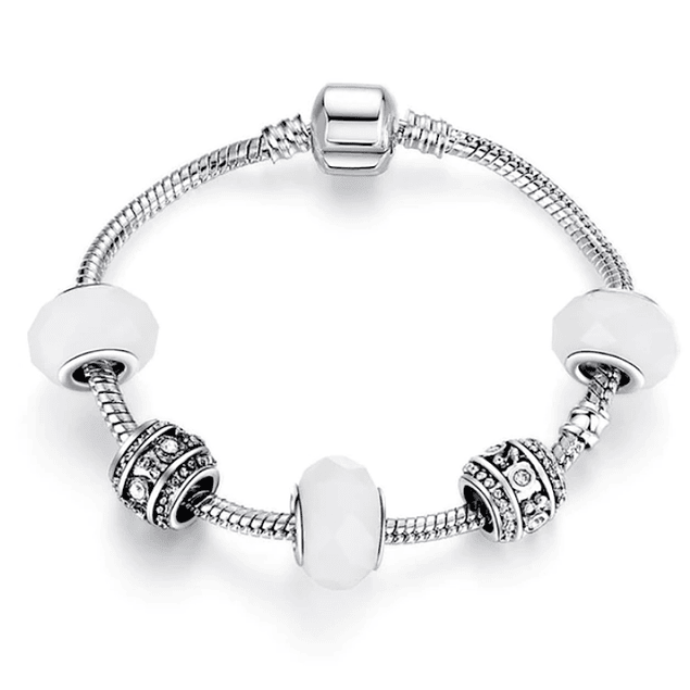 Pulsera Cuentas Dije Mujer Cristal Murano Plateada 3018